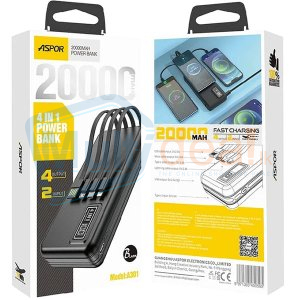 Stay connected and powered up with the Aspor A301 20000mAh Power Bank. Designed for those who need extended battery life, this power bank offers a 20000mAh capacity that can charge your devices multiple times. Whether you're traveling, working, or on the go, it ensures you never run out of battery.