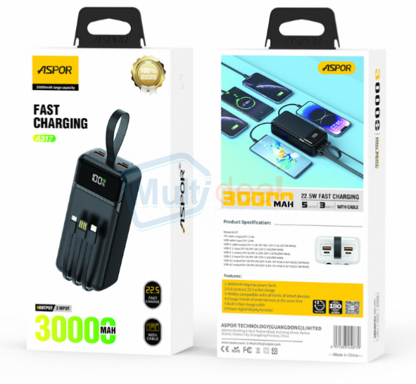 ASPOR A317 POWER BANK 22.5w 30000mah - Best price in Sri Lanka
