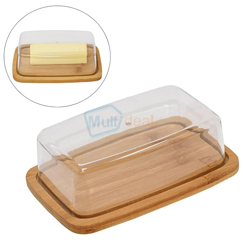Butter Dish With Lid Plastic Wooden Base Butter Holder Box Storage Serving Tray - Best price in Sri Lanka