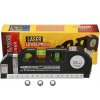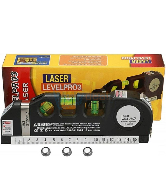 This 5 in 1 laser lever can be used for many different projects around the house for example hanging shelves, cabinets, picture frames, wall mount televisions, tiles and so on. The laser beam line can be turned to any degree from being vertical or horizontal and cross pattern. Sides of the level can be used as a ruler, one side is metric and the other side is imperial scale, the back side of the level includes an 8ft or 2.5 meters metric and imperial measuring tape with graduations down to 1/32in and 1mm. The main body includes vertical, horizontal and 45 degree vials. The laser is controlled by a side switch and powered by three pieces AG13 batteries that are included inside the laser assembly.