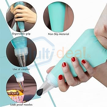 Silicone Piping Bags, 8 pcs Stainless Steel Nozzles Set with Coupler - Best price in Sri Lanka