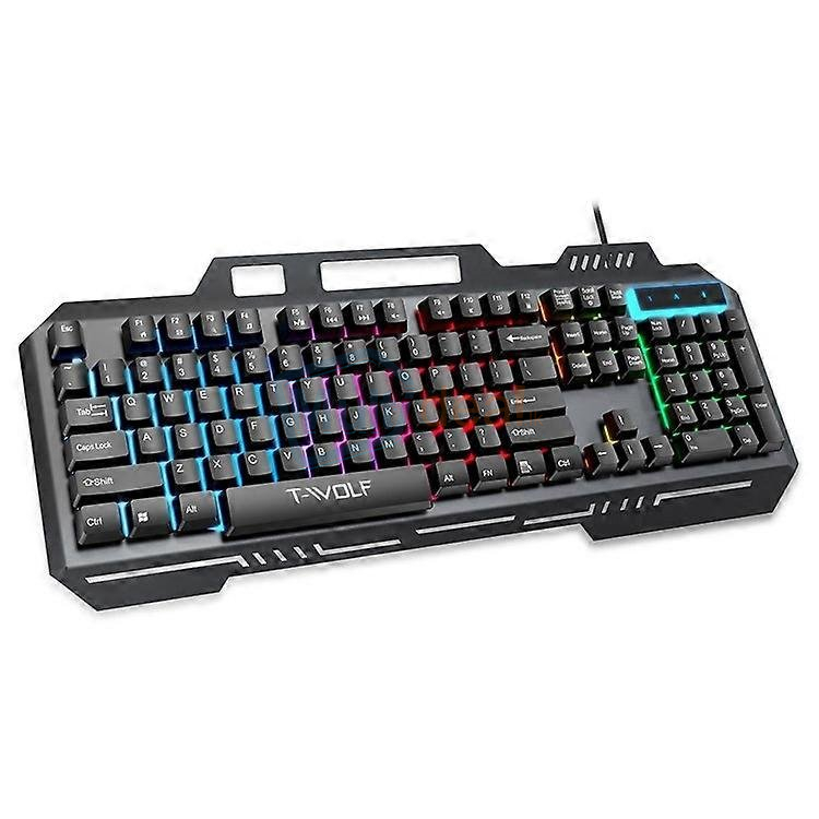 Ergonomic keyboard layout reduces wrist fatigue and discomfort during prolonged use With colorful backlit design, making it more convenient to type in low-light environments Easy to use. Just plug and play. Very easy connection to your laptop, desktop computer or tablet The phone holder function can add more convenience for you A practical gift for yourself or your relatives/friends Specification: Cable length: 130cm Light effect: colorful backlight Axial body: thin film Connection mode: USB cable Number of keys: 104 Size: 460*180*30mm Waterproof rating: splash-proof